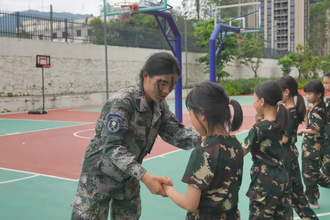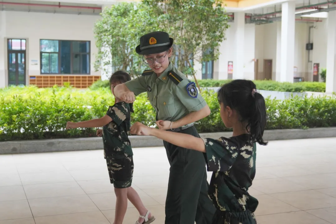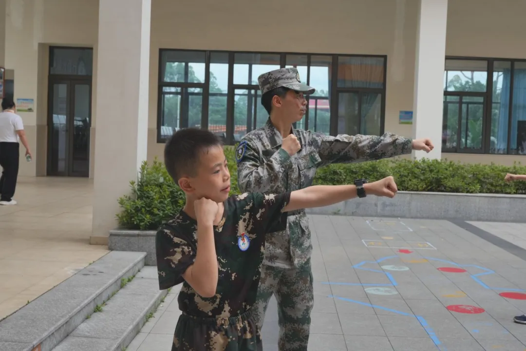 随后,军政教导队的青年学生们进行分班教学,分别对孩子们进行国旗护卫队培训、擒敌拳教学等,以此培养孩子们的纪律性和团队精神。孩子们的队伍里也传来这样的声音:“又学到了新东西!”