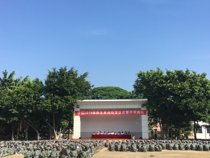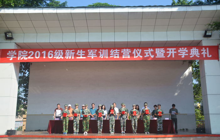 2016年9月14日上午8:30,我院2016级新生军训结营仪式暨开学典礼在学院足球场隆重举行,学院院长黄伦生教授、党委书记宋翎教授和袁再华、郑雪梅副院长以及相关行政处室的负责人和各系主任书记、军训基地负责人出席了本次军训动员大会。