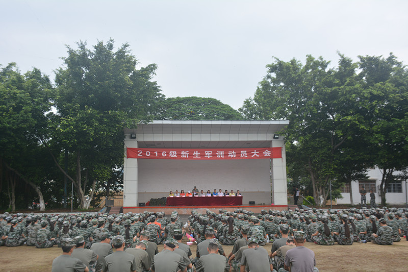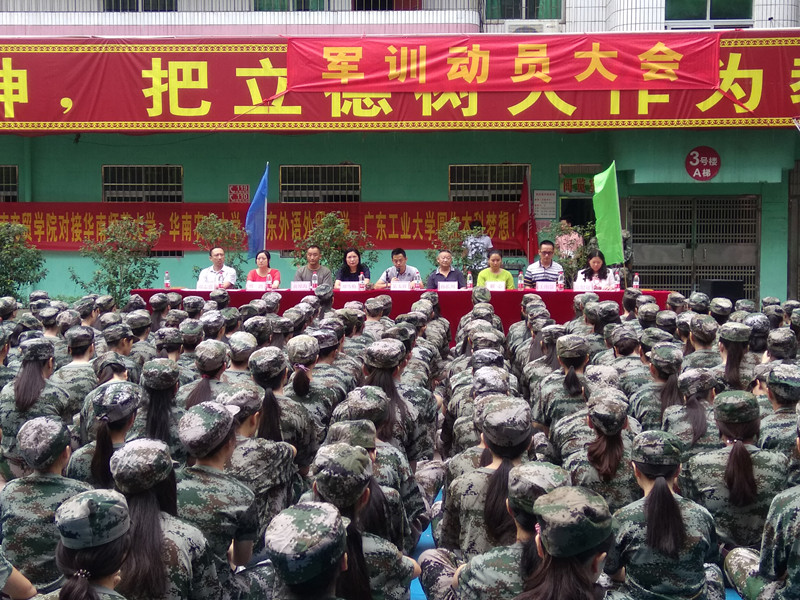 两校区大会分别由学生处徐自国处长和高银屏副处长主持。大会在国歌奏唱当中拉开帷幕。两校区分别由宋书记和吴副院长作军训动员讲话。他们鼓励全体新生在军训期间要充分发扬艰苦奋斗精神,培养自己的坚韧意志,以便更早更好地适应大学生活。随后军训负责人对军训工作作了指示,要求全体教官要以身作则,全力以赴搞好本次军训工作。在学院学生代表发言后,黄院长和郑副院长分别向两个校区的军训负责人授予军训团团旗,本次新生军训动员大会圆满结束。