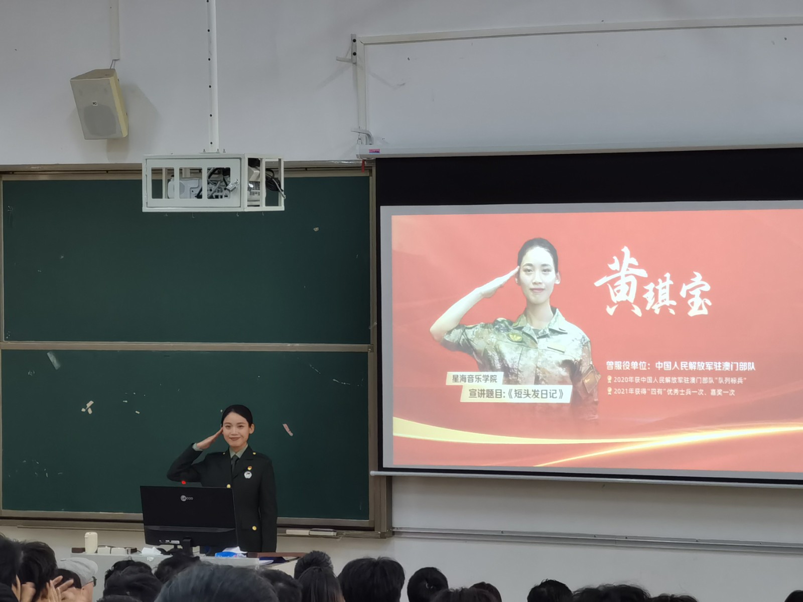 宣讲会上,她们用朴实无华的语言、鲜活生动的案例,将军营中的点点滴滴娓娓道来,既讲述了军旅生活的磨砺与成长,更描绘出投身国防事业所肩负的责任与无上荣光,深深感染了在场的每一位同学。