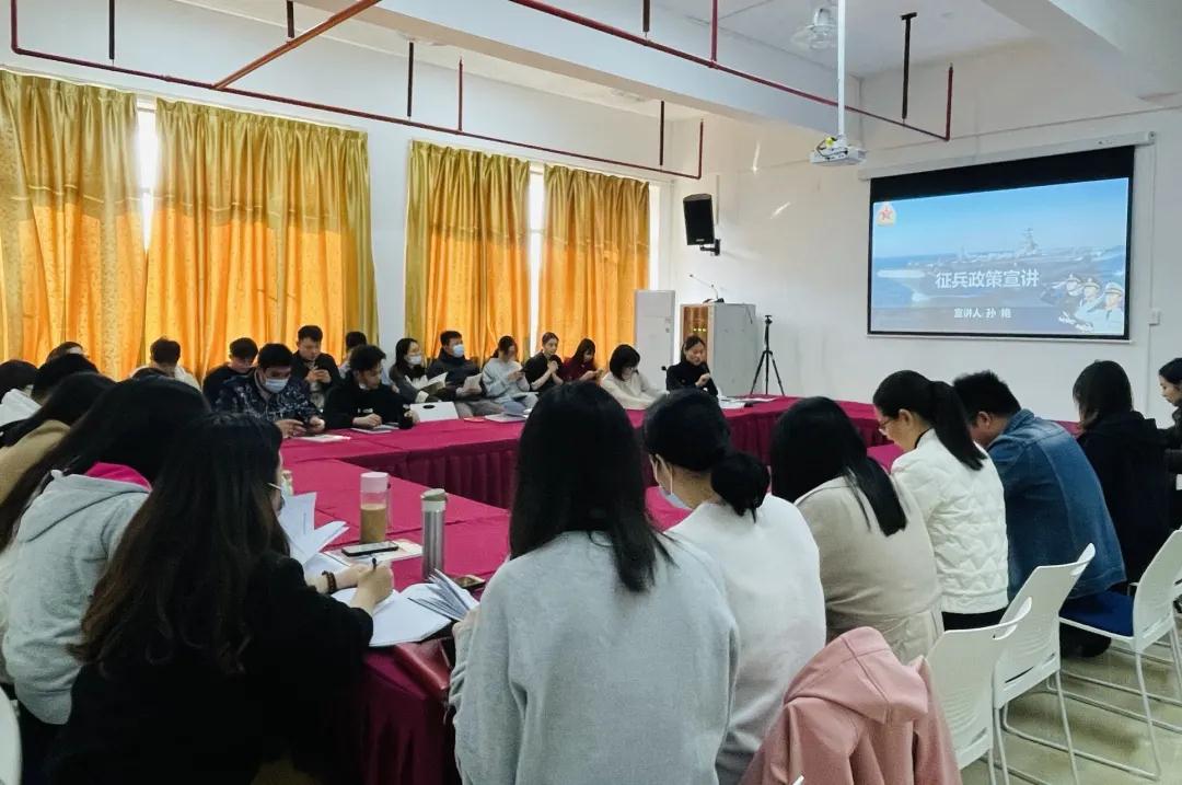 孙艳老师从征兵法规、优待政策、入伍流程、学业扶持、就业发展、军营生活等方面进行详细讲解。她指出,大学生应征入伍是无上光荣的政治任务,辅导员是征兵工作的一线组织者和宣传员,希望各位辅导员敢于担责,主动作为;要熟悉征兵政策法规并掌握相关业务知识,把动员学生参军入伍与日常思想政治工作相结合;将征兵宣传融入学校日常爱国教育,不断加强征兵宣传力度,创新征兵工作方法,切实做好我校征兵工作。