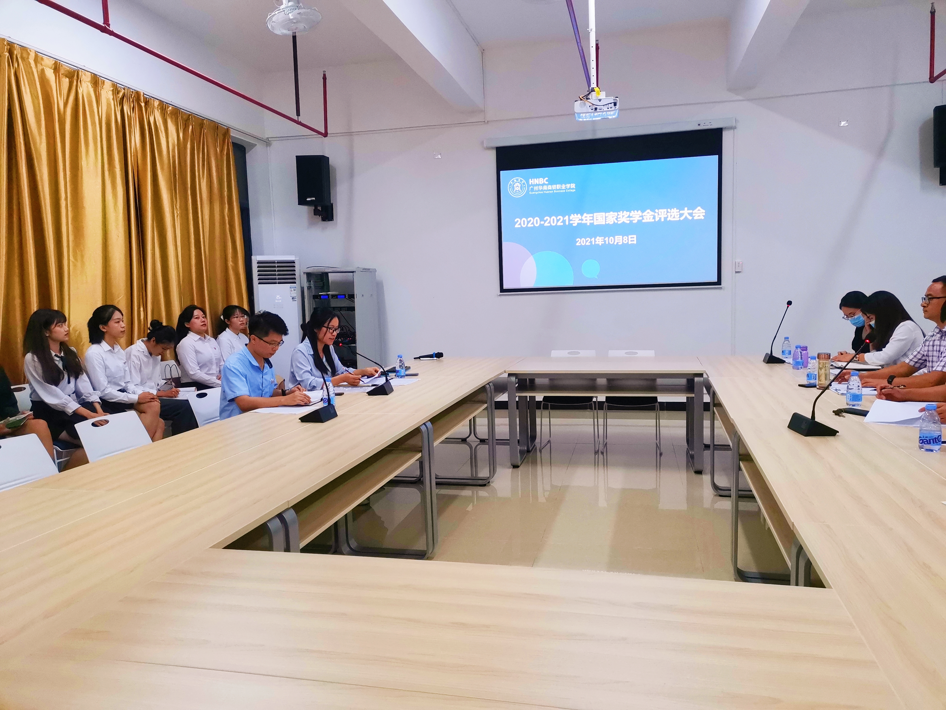 为保证国家奖学金评审质量,体现公开、公平、公正、择优的评审原则,形成有效竞争的激励机制,扩大国家奖学金的影响力,切实推动我校校风、学风建设,并结合学校实际情况,我校于2021年10月8日在实训楼3-810会议室顺利开展了2020-2021学年国家奖学金现场评审会。学生发展部刘奇志部长、丘艳芳部长助理、各二级学院书记及2020-2021学年国家奖学金候选学生出席了本次活动。活动由学生发展部丘艳芳部长助理主持。