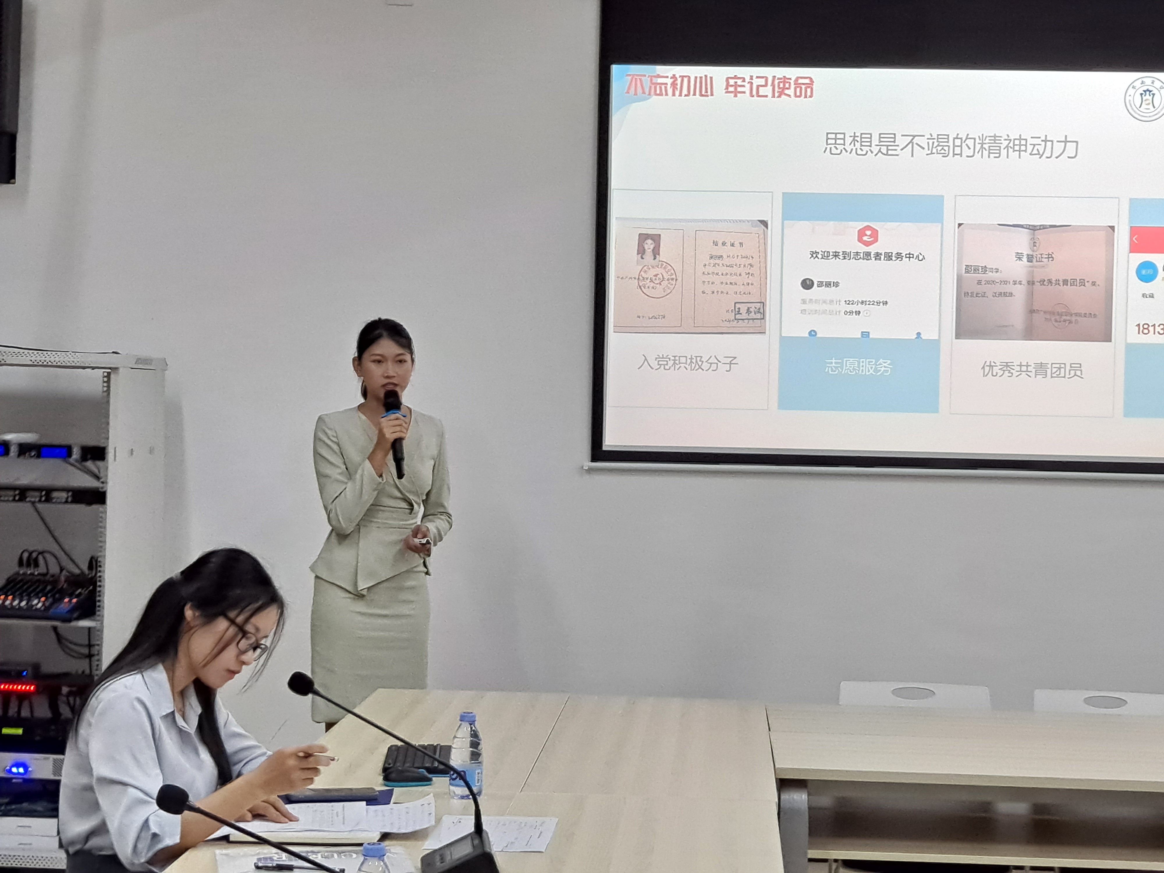 经过学生本人自愿申报、二级学院初审、学生发展部学生资助管理中心复审等环节,共14名优秀学生作为候选人参加了本次校级评选活动。评选会上,候选人以PPT形式对各自在思想政治、学业成绩、素质拓展、获奖情况、公益实践等方面的表现进行了汇报,评委根据候选人纸质版材料及现场表现进行打分,最终成绩由“现场汇报得分”(占95%)和“网络投票得分”(占5%)两部分组成。