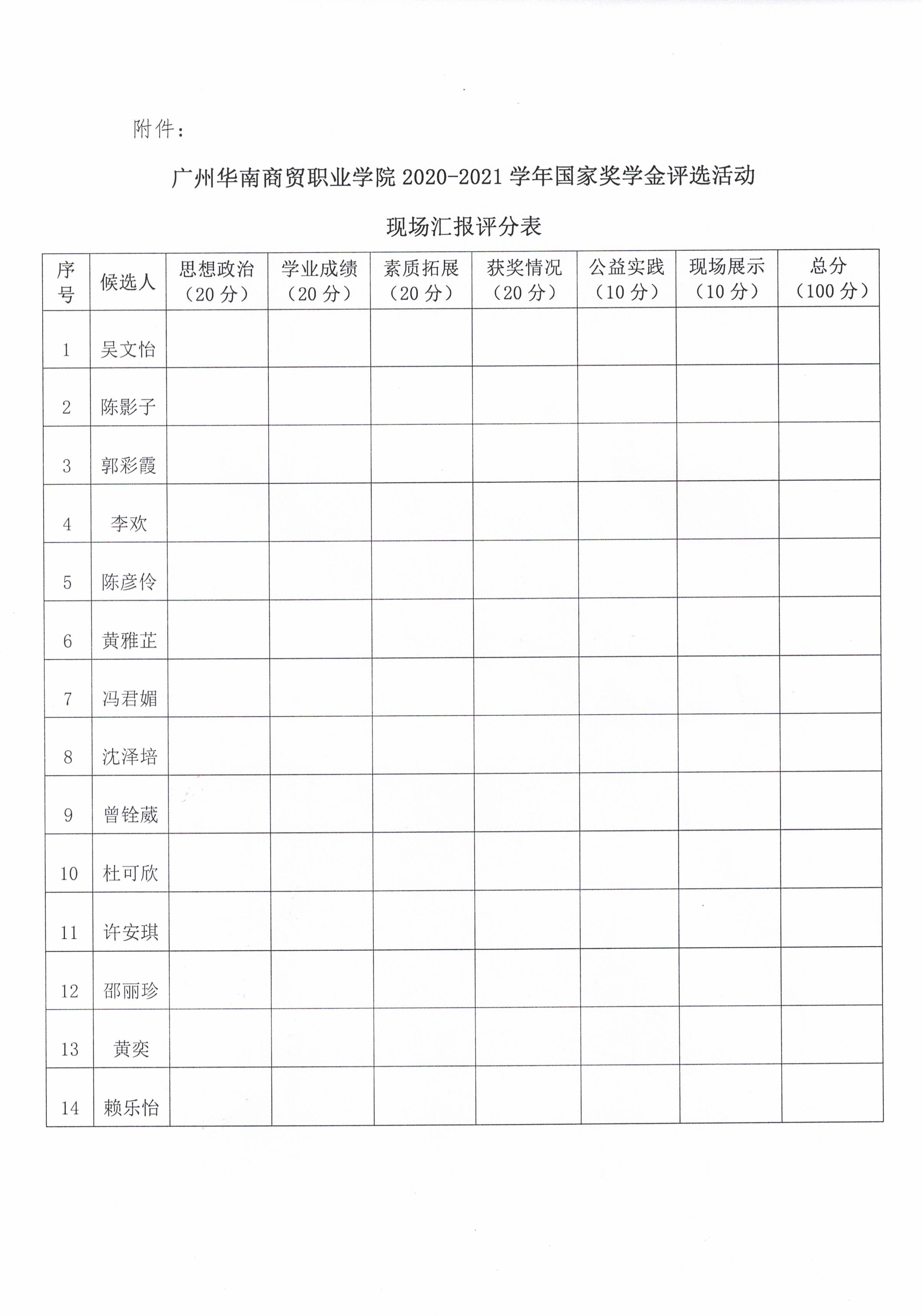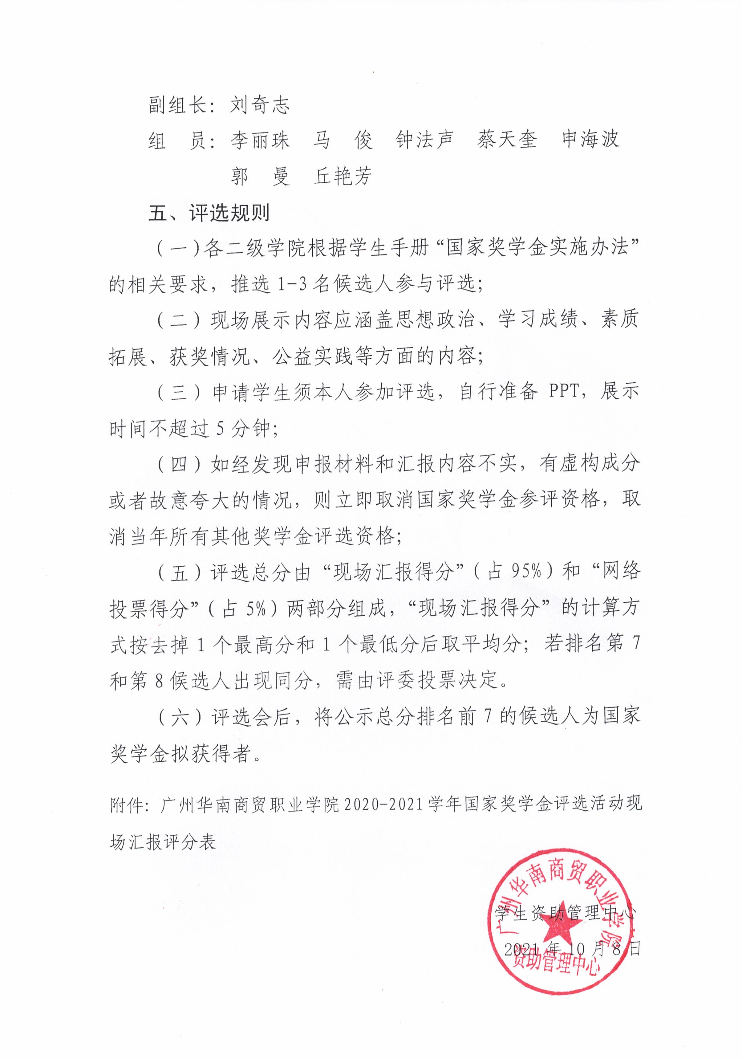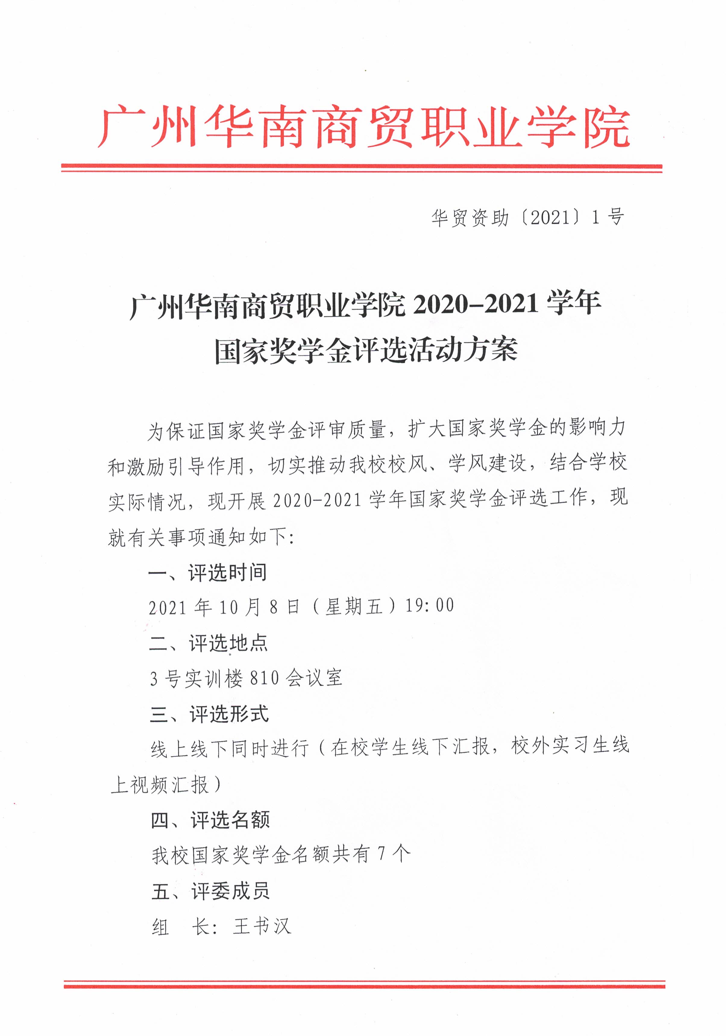 广州华南商贸职业学院2020-2021学年国家奖学金评选活动方案