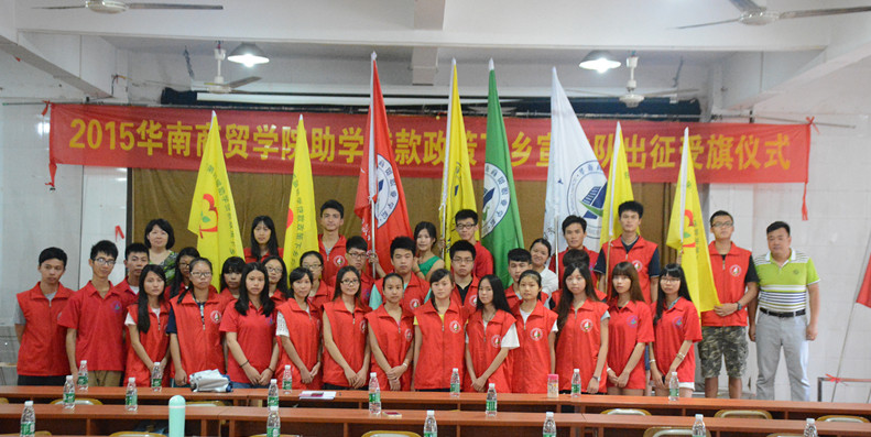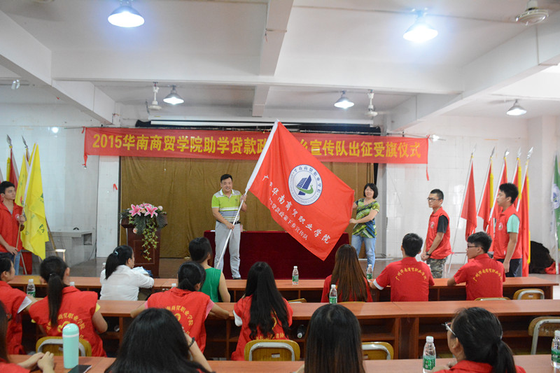 “助学贷款政策下乡行”宣传活动是根据教育厅的《关于开展第四届助学贷款下乡行活动的通知》精神组织开展的,为了加大对高校贫困学生资助政策的宣传力度,我院组织了4支宣传队分赴粤东、粤西、粤北等地开展宣传。在授旗仪式上,学院资助中心高银屏老师对本次宣传活动的工作方法、重点和要求做了说明和布置,要求每位宣传队员做好充分准备,熟悉国家助学贷款政策知识,耐心讲解,细致倾听,做好工作笔记。李丽珠老师代表宣传队员发言,表示所有队员一定会认真负责、全心全意,把助学贷款的福音传达给贫寒学子。