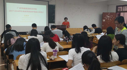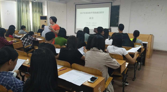 接着,高银屏老师在会上开展“诚信教育”,强调贷款学生应当按时还款,请勿恶意拖欠助学贷款,做一诚信的大学生。