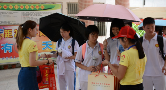 为贯彻落实广东省教育厅和学院关于国家资助政策宣传的统一部署,促进资助政策家喻户晓、深入人心,2017年8月3日,我院“国家资助和助学贷款政策下乡行”志愿服务“青春梦之队”前往汕头市潮阳区棉城中学开展国家资助政策宣传活动。