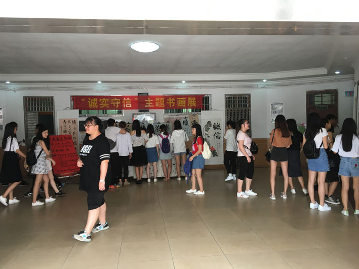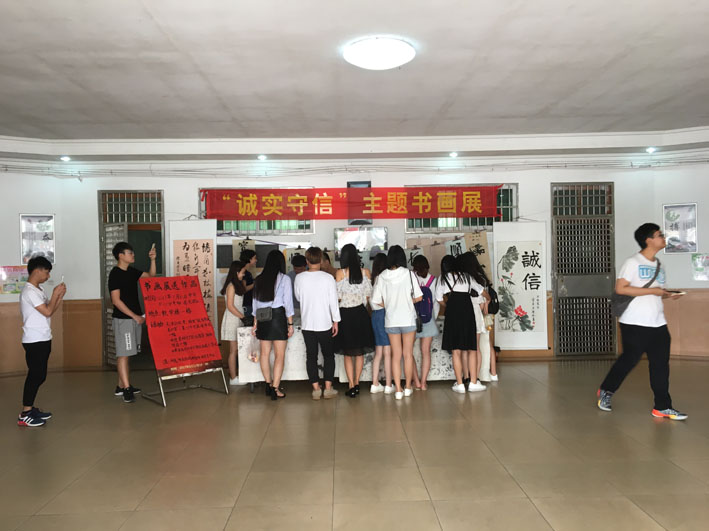 为切实将国家资助政策落到实处,着力提高我院家庭经济困难学生资助工作水平,推动国家助学贷款工作和学院“人品塑造”工程项目在我院持续健康发展,5月15日至19日,学院在教学楼一楼大厅举办了为期5天的“诚信”主题书法作品展,期间得到了学院师生大力支持和积极参与,书画作品展获得完满成功。