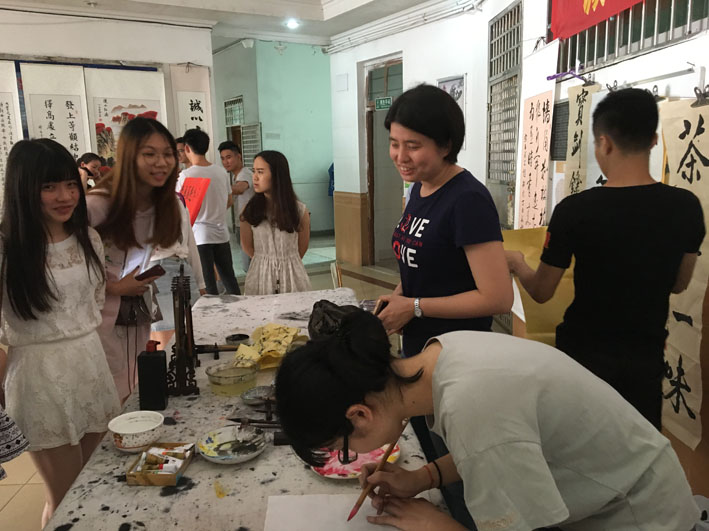 5月18日下午,书画协会的指导老师以及学生为前来参观展览的师生现场免费创作、赠送书画作品,反应热烈,将本次书画展推向高潮。