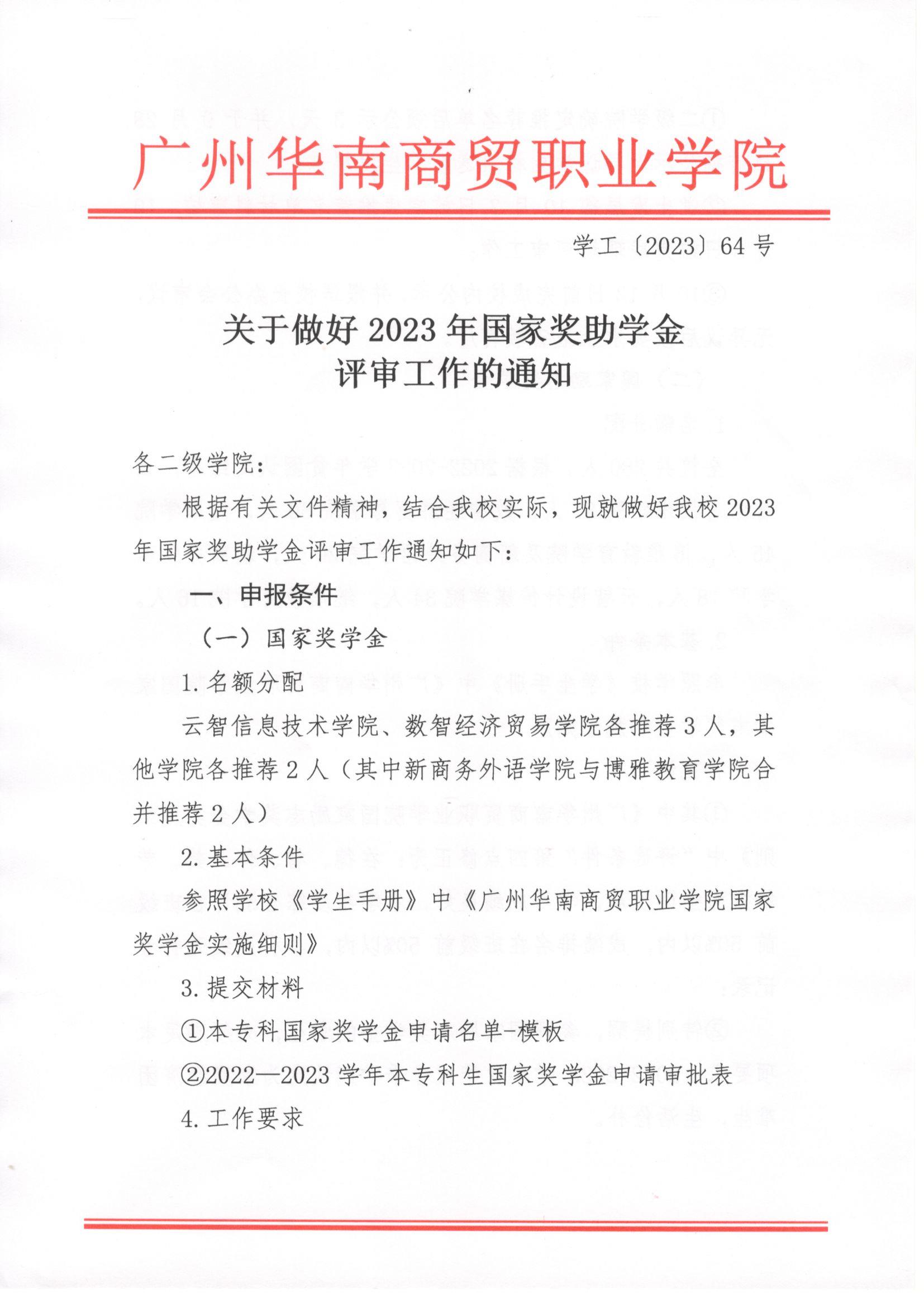 关于做好2023年国家奖助学金评审工作的通知
