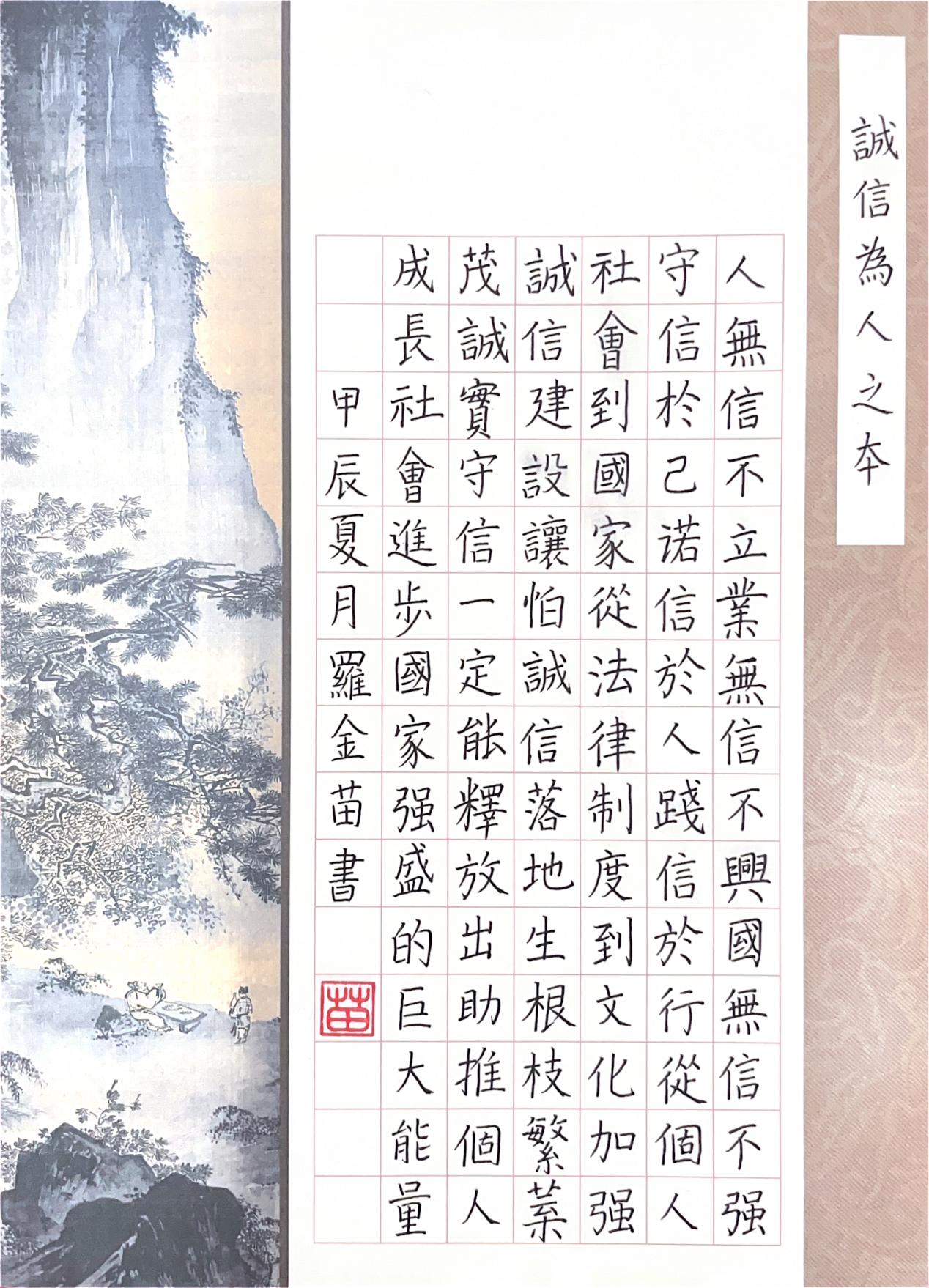 为引导学生树立正确的世界观、人生观和价值观,培养受助学生自立自强、诚实守信、知恩感恩、勇于担当的良好品质,促进受助学生全面发展、成长成才。学生资助管理中心以“资助育人”为主线,将资助与育人相结合,传承发展中华优秀传统文化、树立文化自信。结合学校《“三全育人 五育并举”实施方案》,于2024年5月27日-6月2日成功举办2024年“自强 诚信 感恩”书画展。
