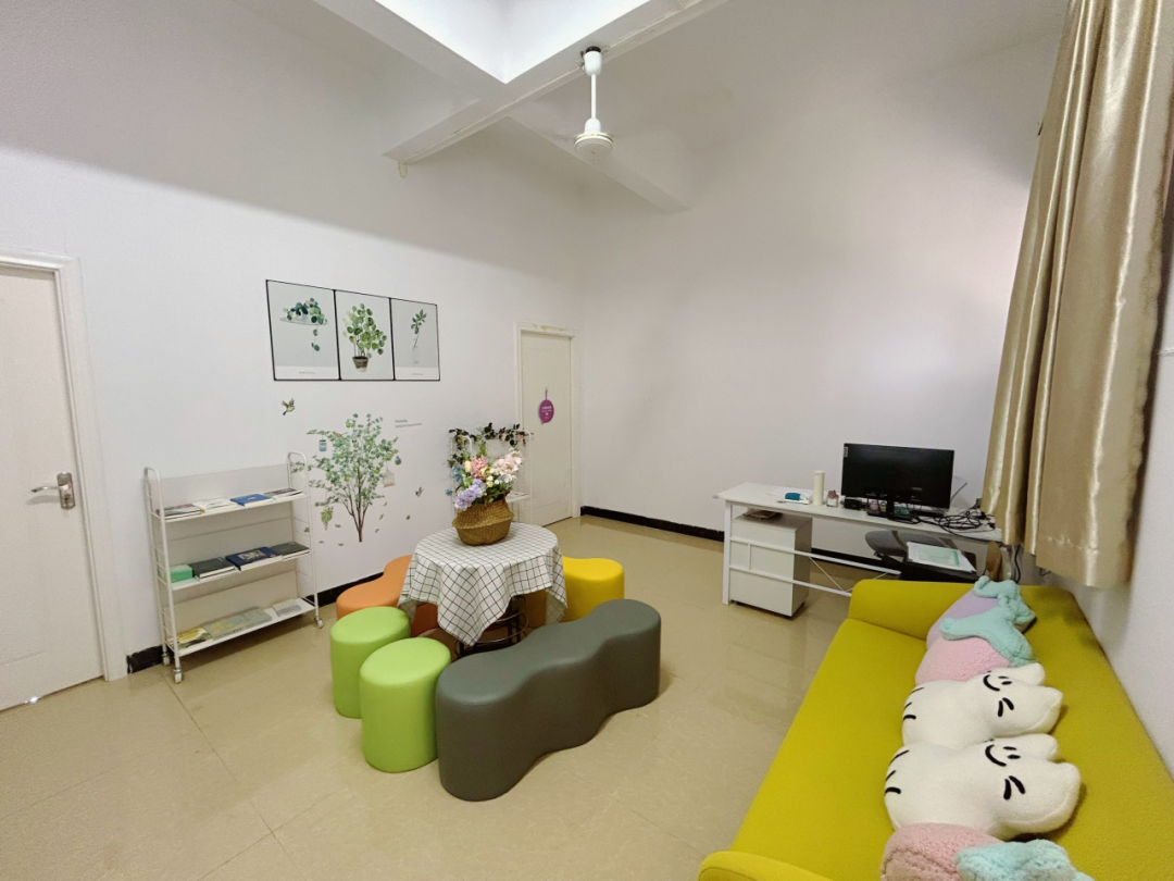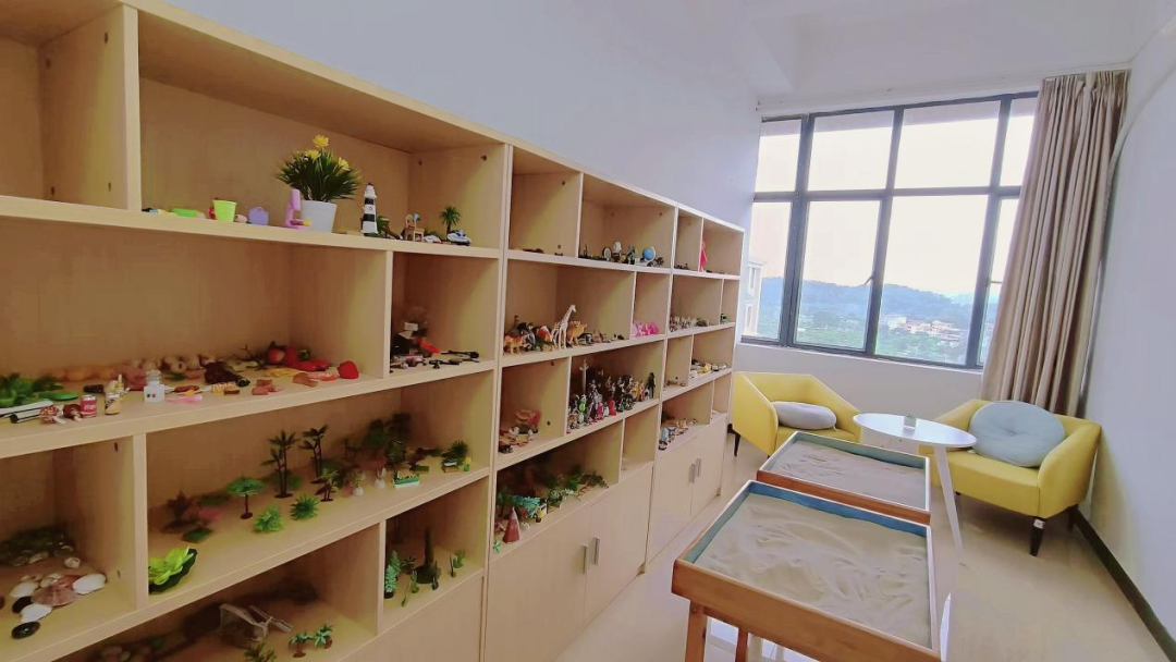 心理咨询中心建设有:心理自助区和心理测评区、个体咨询室、团体心理辅导室、沙盘治疗室、音乐放松室等等。