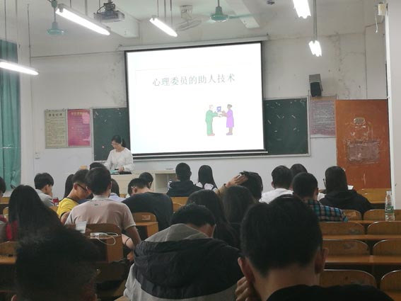 为进一步提升我院心理健康教育工作的质量,完善心理健康教育工作网络体系,帮助班级心理委员明确工作职责,提高业务水平,我院学生处心理咨询中心于11月16日下午分别对16级和17级心理委员开展了相关培训,心理咨询中心郭楠老师以及16、17级心理委员参加了此次活动。