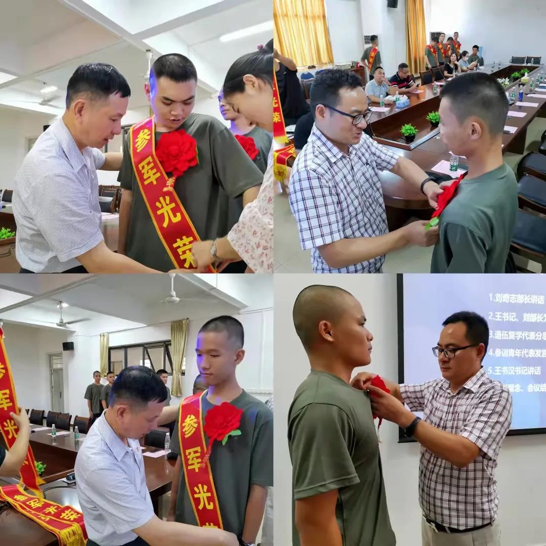 接着,由王书汉书记和刘奇志部长为17名应征双合格青年佩戴大红花和“参军光荣”绶带。