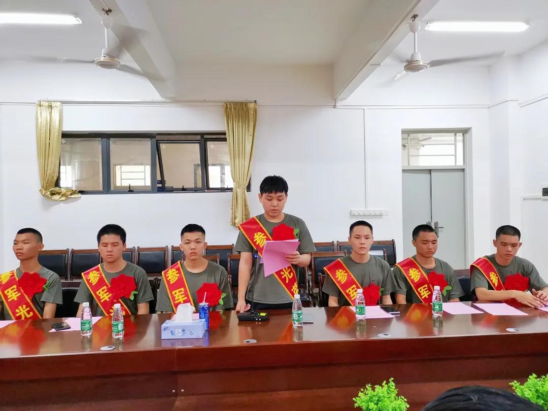 9月1日上午11时,广州华南商贸职业学院2021年秋季在校应征双合格青年役前集训欢送会在1-515会议室隆重举行。学校党委王书汉书记、学生发展部刘奇志部长、吕文繁副部长、各二级学院书记、国防教育教研室孙艳主管、学校征兵工作站张春生主管、17名应征双合格青年及优秀退役士兵代表参加了欢送仪式。仪式由吕文繁副部长主持。