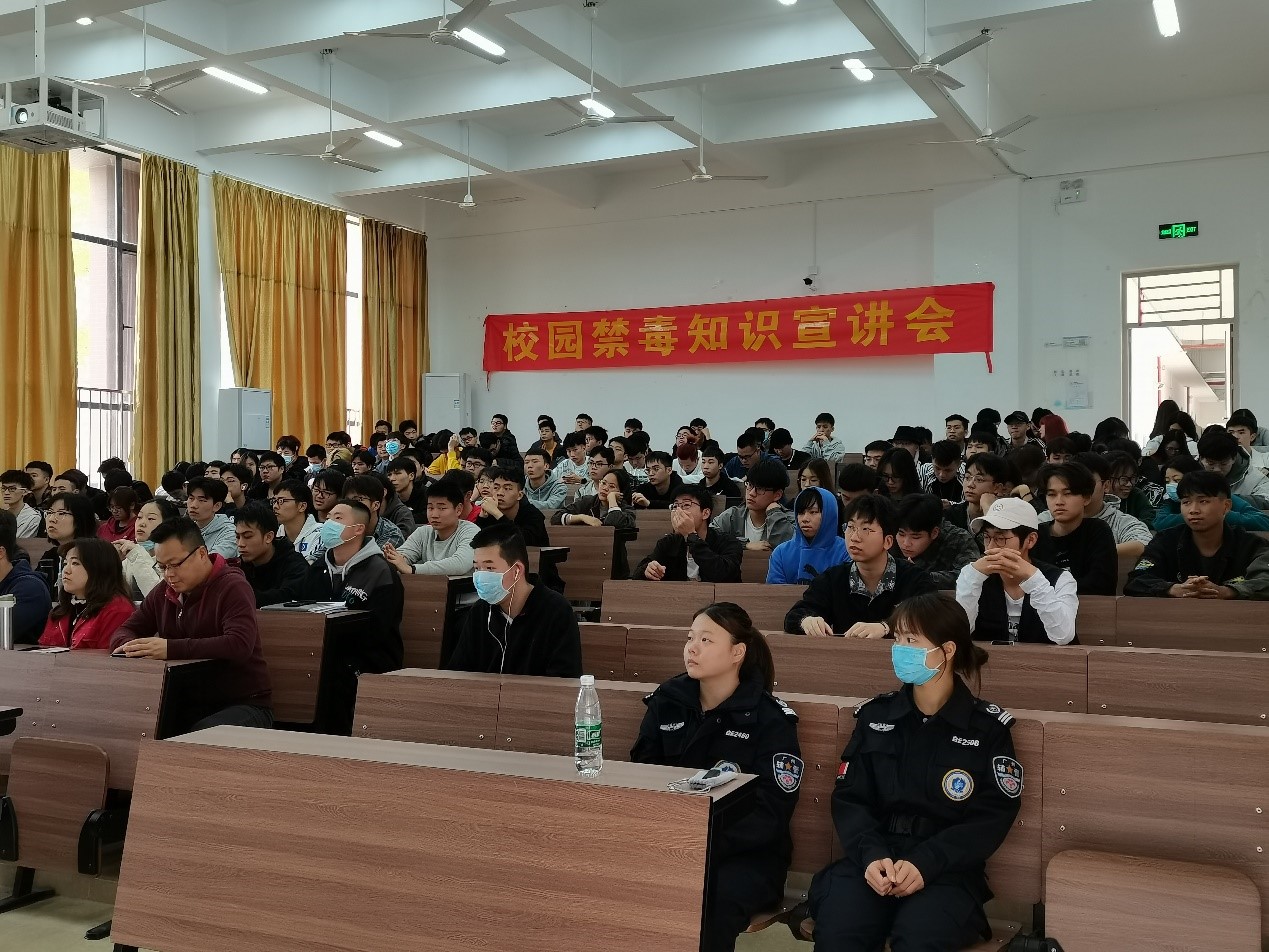 首先,广州市禁毒委员会郑志进警官向同学们进行禁毒知识宣讲。郑警官通过视频形式,给同学们播放缉毒警察工作录像实拍,生动形象展示了吸毒诱发大量违法犯罪活动,造成自伤自残、暴力伤害、毒驾肇祸等极端案事件在各地屡次发生,给同学们留下了深刻的印象。然后,郑警官向同学们介绍毒品的危害和常见毒品,要求同学们提高对毒品的辨别能力。郑警官重点讲述染毒陷阱和预防方法,引导同学们养成健康生活习惯,要形成健全的人格,培养健康的性格,拥有良好的情商,树立健康的生活习惯;教育同学们在大学里认真读书,树立正确的世界观、人生观、价值观。