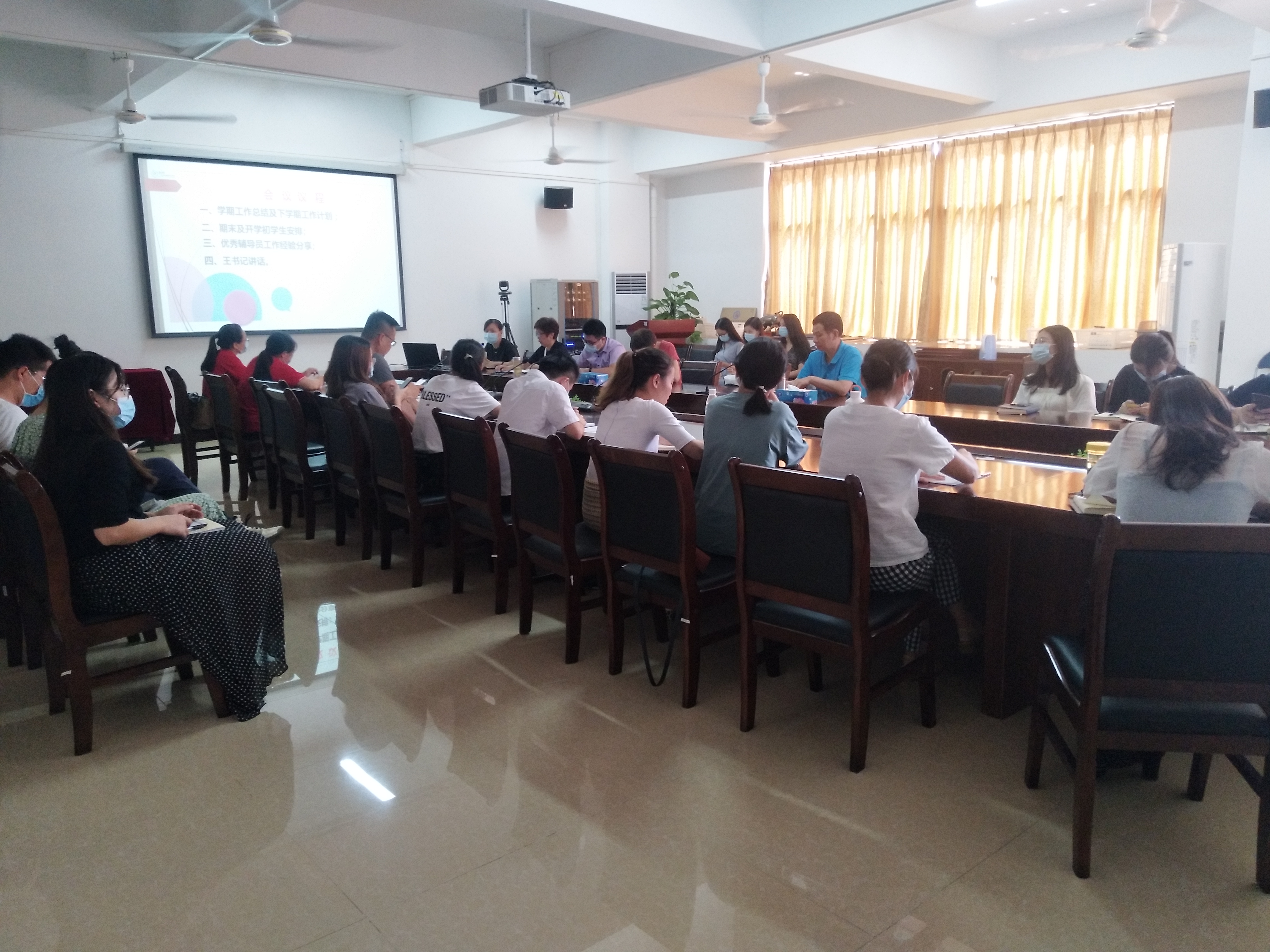 7月16日下午15:00,学生处在白云校区1-515会议室召开了本学期学生管理工作总结大会暨下一步重点工作统筹会,党委王书汉书记、学院鲍冰副院长出席会议、学生处张和平处长、何姗副处长、团委钟法声书记以及各系书记、全体辅导员、学生处、团委和心理咨询中心工作人员参加了此次大会,会议总结了学期重点工作和取得的成绩,对下一阶段的重点工作进行了统筹规划和部署。大会由何姗副处长主持。