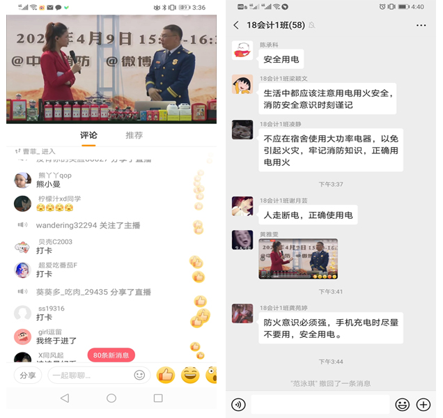 为了加强校园消防安全教育,创建平安校园,4月9日下午15时,广东消防开展线上消防安全知识培训。针对大学生日常消防知识薄弱、正确处理火灾等突发事件的应急能力欠缺等问题,消防安全教员采取现场教学、播放案例和模拟体验等方式,讲解学校宿舍和家庭火灾的常见隐患、火场逃生自救及报警常识。
