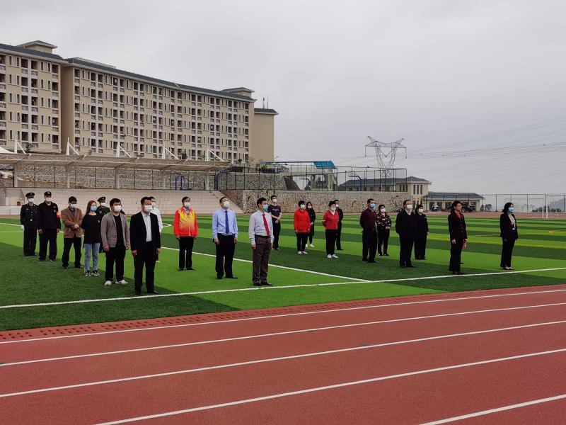学院刘剑清院长、党委王书汉书记、鲍冰副院长、郑雪梅副院长及在校教职工在白云校区田径运动场参加了现场升旗仪式,未返校的师生居家远程参与“云升旗”。本次升旗仪式由鲍冰副院长主持。