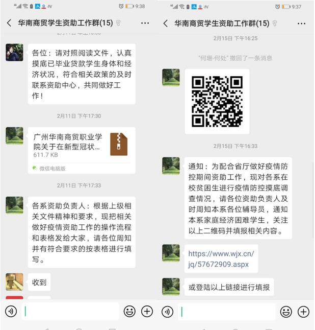 为全力做好新冠肺炎疫情防控期间资助工作,根据国家和省厅相关文件精神和我院实际,资助中心对我校已毕业贷款学生和818名家庭经济困难在校生开展疫情期间的排查工作,建立疫情期间受困学生台账,确保每一位贫困生疫情期间的情况得到及时了解和帮助。各系辅导员广泛宣传疫情防控期间国家和学校的资助政策,运用各类资助,帮助家庭经济困难学生渡过难关。