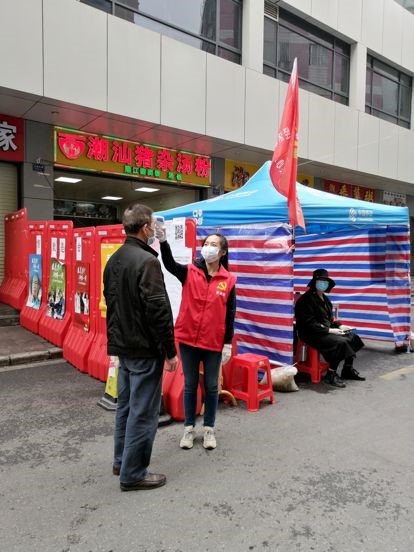 贸易经济系2019级国际贸易实务1班何铭贤同学是一名退役军人,疫情当前,他不惧危险,主动请缨,奋斗在防疫一线。2020年2月3日,何铭贤主动与黄连社区民兵营营长联系,希望能够加入社区防疫工作,为祖国加油。他被安排在社区市场进行体温测量、排查和宣传工作。市场人流量比较大,他每天要站6个小时以上,结束工作后要对全身进行消毒,但他从来没有说过累和怕。他说:“不知道这次工作具体什么时候结束,但我希望因为我的加入,能够对本次疫情防控有所帮助,这是一名中国军人的责任。”