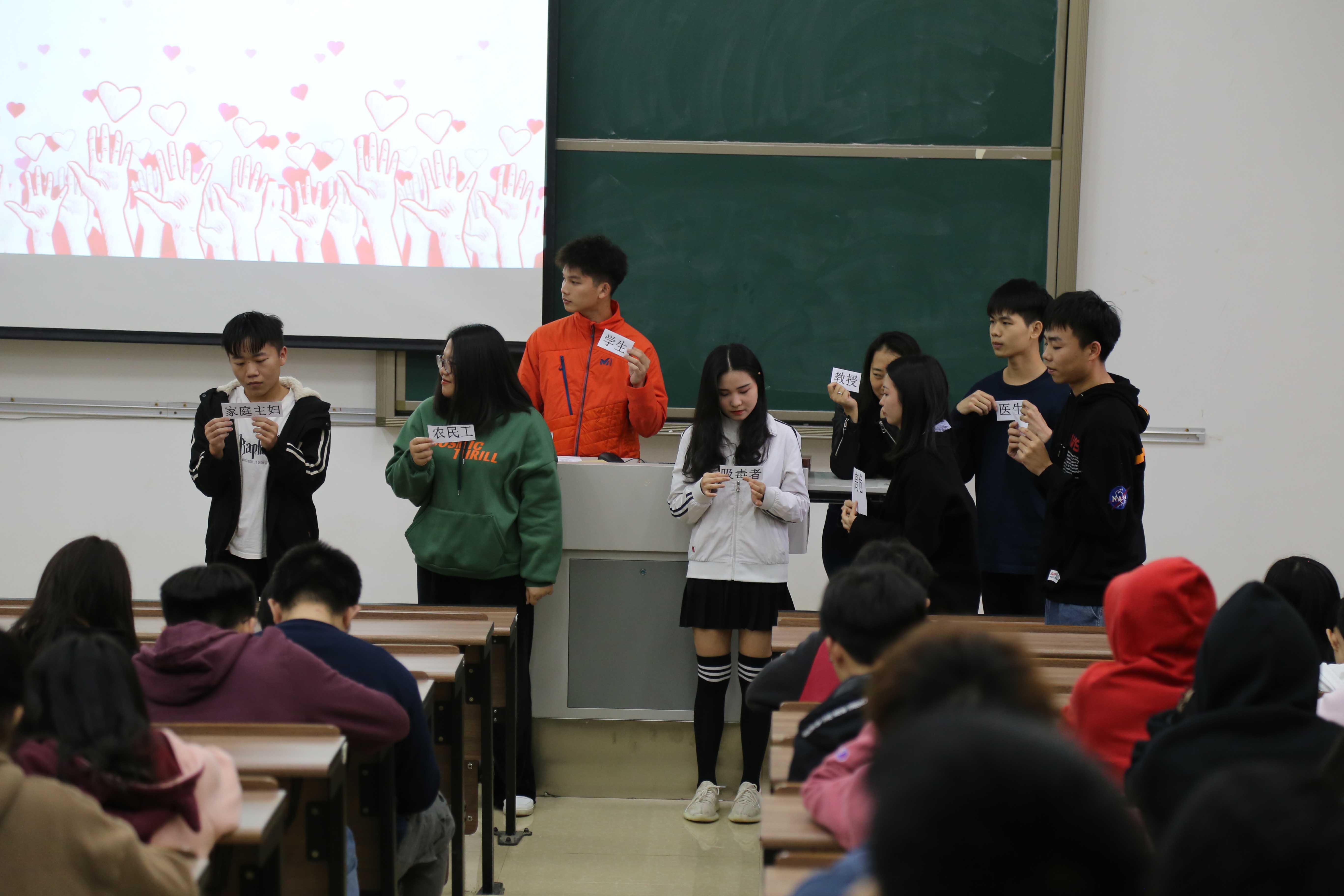 随后,陈老师邀请同学上台参与现场游戏互动,同学们在游戏当中讨论“哪些人群是艾滋病感染高危人群”,一番激烈的讨论过后,大家得出了结论:无论哪种人群,都有感染艾滋病的可能,只有高危行为,没有高危人群,因此,要了解艾滋病的传播途径,树立正确的两性观念,保护好自己,也对他人负责任。
