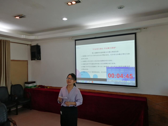 参赛辅导员通过抽签确定宣讲顺序,分别以“习近平关于青年成长成才重要思想论述的理论,引导学生加强文明行为养成”“大学生坚定文化自信”“弘扬中华名族优秀传统文化”“根据习近平在全国教育大会上的讲话,对大学生开展劳动教育”“根据习近平关于教育的论述,对大学生开展综合素质教育”为选题方向,进行了精彩的宣讲。宣讲过程中参赛辅导员紧紧围绕主题,理论与实践相结合,娓娓道来,获得现场阵阵掌声。