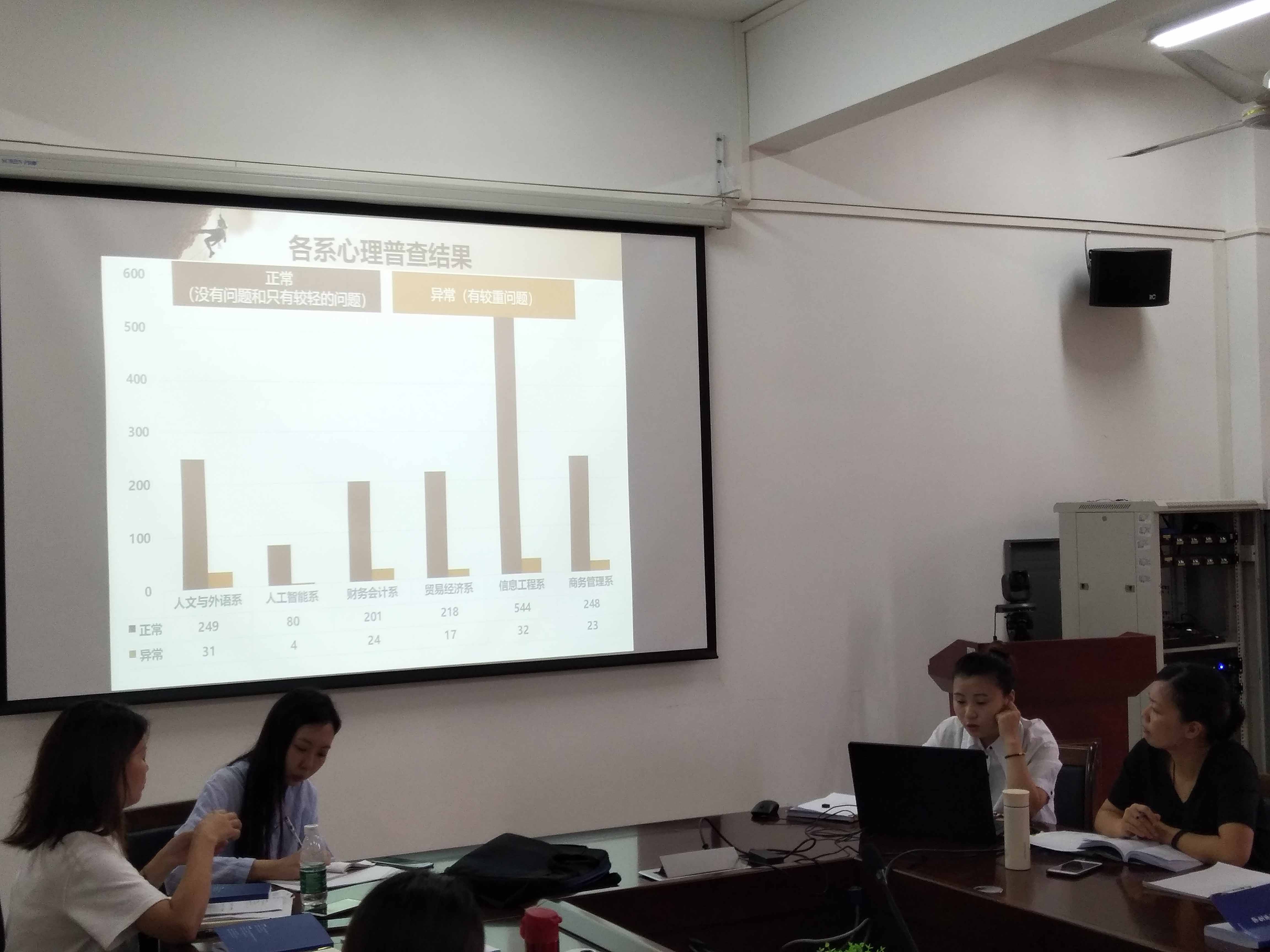 心理咨询中心孙影老师就2019级新生心理普查结果简单向全体与会人员做了分析说明,对新生中存在的常见心理健康问题罗列,并分条逐例对问题的识别、处置进行解读,力争让大家增强日常工作中识别心理问题和应对突发心理问题的能力,给予学生积极的帮助和鼓励。同时,孙老师指出,学生心理健康教育不会一蹴而就,辅导员老师在应对学生心理问题时一定要有耐心、真诚、同心理,让学生勇敢面对和积极应对心理健康问题,健康快乐度过美好的大学生活。