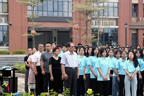 金风送爽,秋兰飘香;新的学年,新的气象;新的学期见证新的发展。为庆祝中华人民共和国成立70周年,9月2日上午07:30分,广州华南商贸职业学院在白云校区教学楼前隆重举行“我为祖国升国旗”主题教育升旗仪式”。我院黄伦生院长、鲍冰副院长、学生处张和平处长、各系书记、辅导员、在校师生参加了升旗仪式。升旗仪式由张和平处长主持。