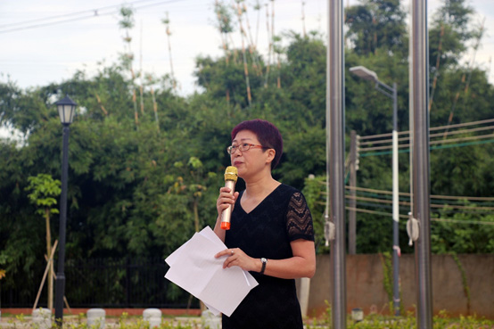 礼毕,鲍冰副院长做国旗下的讲话。鲍院以新中国70年的风雨历程为切入点,深情地再现我们伟大的祖国在中国共产党领导下,70年春华秋实,书写出的一篇篇波澜壮阔的故事。鲍院用我们平安富足的常态生活,号召全体师生感恩祖国、爱护祖国。新学期的第一课上,鲍院也对全体同学提出要求与期待:希望同学们在中华人民共和国成立70周年之际,树立新目标,制定确实可行的措施,过好每一天,上好每一节课,不负国家,不负韶华。