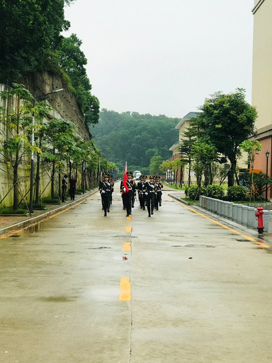 6月24日上午7:30分,广州华南商贸职业学院在白云校区教学楼前举行“礼敬中国,国旗下的青春誓言”主题教育升旗仪式。我院学生处张和平处长,各系书记、18辅导员和500余名在校学生参加升旗仪式。升旗仪式由张和平处长主持。
