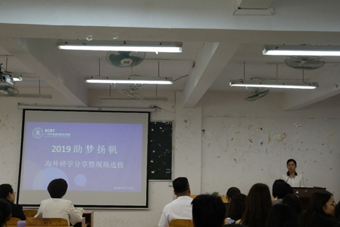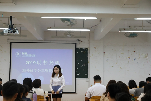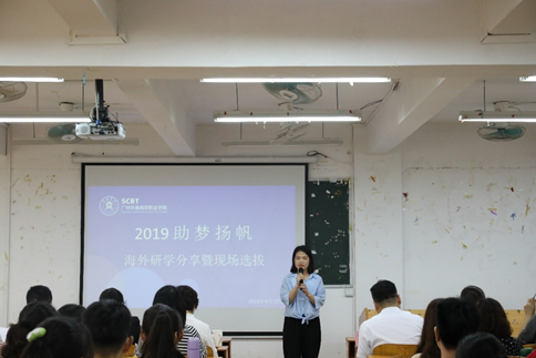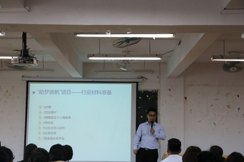 接着,何姗副处长传达了广东省教育厅关于2019年“助梦扬帆”海外研学工作的通知精神,并宣读2019年海外研学评选条件,鼓励学生奋发向上,努力成为国家栋梁之才。