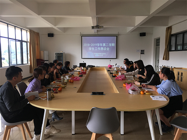 为进一步提升我院辅导员队伍建设深入了解辅导员思想动态及工作生活情况,推动我院学生工作步上新台阶,4月3日,学生处在白云校区1-602召开了18级辅导员工作恳谈会。学院黄伦生院长、鲍冰副院长及学生处张和平处长和2018级全体辅导员参加了本次恳谈会。恳谈会由张和平处长主持。