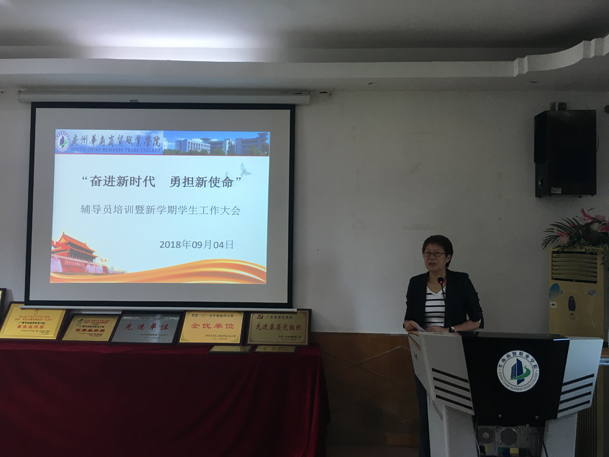 为进一步加强辅导员队伍建设,推动辅导员队伍专业化、职业化发展,提升大学生思想政治教育工作质量,9月4日,学生处在行政楼四楼会议室组织召开“奋进新时代,勇担新使命”辅导员入职培训暨新学期学生工作会。学院鲍冰副院长出席本次大会,学生处相关成员、各系书记以及全体辅导员参加了本次培训大会。会议由学生处副处长何姗主持。