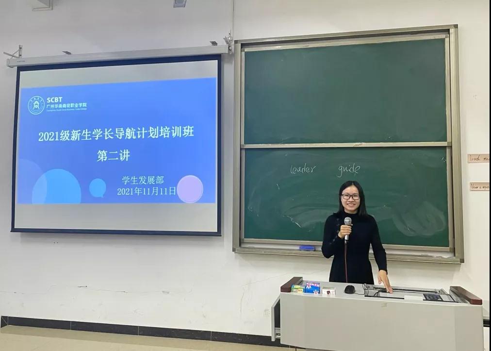 为确保“学长制”导航计划的顺利实施,发挥高年级优秀学生的榜样示范作用,在开班仪式暨第一讲后,广州华南商贸职业学院学生发展部于2021年11月11日19:00在1-104教室,组织召开了2021级新生学长导航计划培训班第二讲。出席本次会议的有学生发展部副部长申海波、2021级新生辅导员及全体21级新生学长,会议由学生发展部部长助理丘艳芳主持。