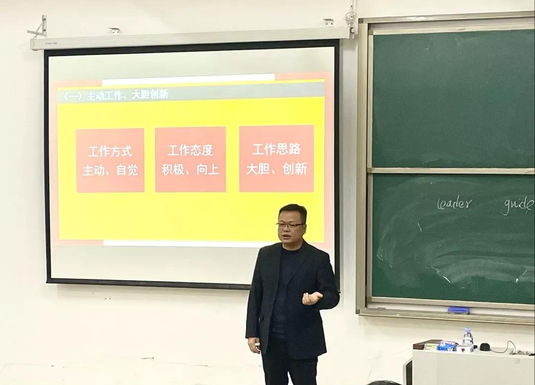 学生发展部副部长申海波分享了习近平总书记在北京大学师生座谈会上的讲话:“青年的价值取向决定了未来整个社会的价值取向,而青年又处在价值观形成和确立的时期,抓好这一时期的价值观养成十分重要。这就像穿衣服扣扣子一样,如果第一粒扣子扣错了,剩余的扣子都会扣错。人生的扣子从一开始就要扣好。”,希望学长明确定位,清楚职责,指导、帮助21级新生扣好大学“第一粒扣子”。