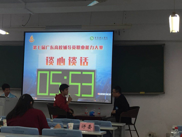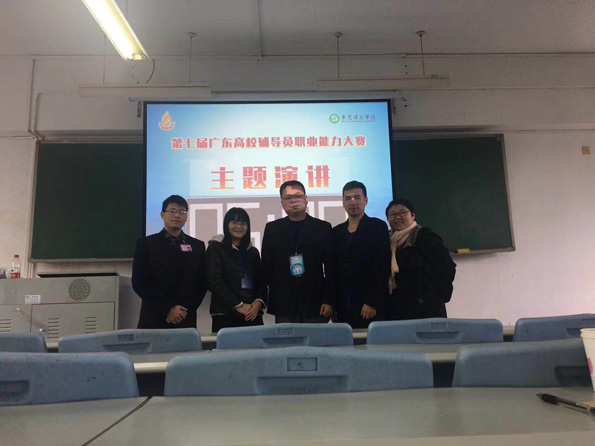 2018年1月5日,第七届广东高校辅导员职业能力大赛在东莞理工学院举行,我院校赛一等奖申海波老师参加本次大赛,同时选派辅导员梁明圣老师、陈媚老师、陈胤老师、陈丽戎老师前往比赛现场观摩学习。