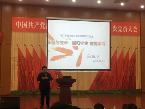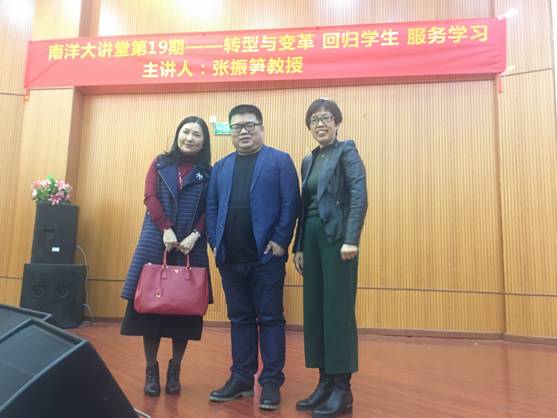 为提升我院学管人员的服务能力、管理水平,促进兄弟学校的交流,更好服务学生,11月23日我院郑雪梅副院长率全体辅导员、各系书记及学生处相关人员和创新创业办任课教师前往广州南洋理工职业学院,聆听由国家教育行政学院特聘专家、齐齐哈尔工程学院副院长、三亚城市职业学院执行院长张振笋教授主讲的“转型与变革:回归学生,重构学习”专题讲座。