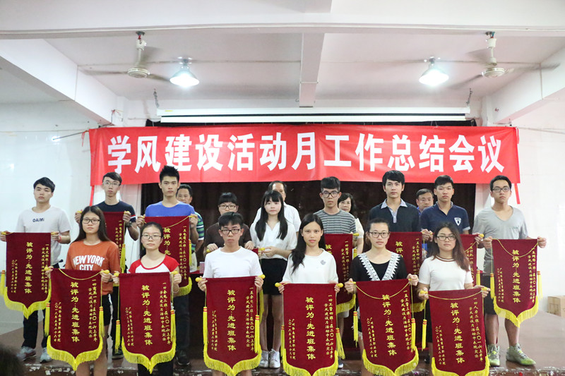 接着由袁再华副院长宣读《关于表彰2016年上半学期学风建设先进班集体的决定》、《关于给予李鸿杰等14名同学留校察看的处分决定》及《关于给予詹松滔等50名记过处分的决定》。再由学院领导对学风建设月中表现突出的班级颁发“先进班集体”锦旗,以示嘉许。希望通过奖惩结合的方式引起广大师生对学风的重视,继而加强学院的学风建设。