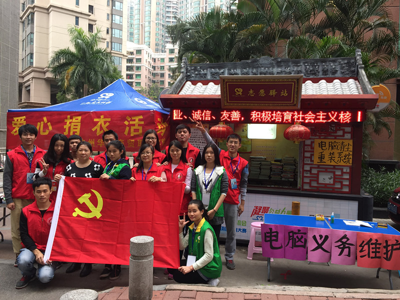 下午14时到达驿站后,高银屏书记介绍活动流程及注意事项后,志愿活动正式展开。小区里的街坊闻讯而至,不一会儿捐赠衣物摊位前挤满了人。志愿者们协同合作,有的进行衣服整理,有的谨慎对捐衣者信息进行登记,共计收集捐赠衣服667件交托给随手公益广东爱心之家 ,送至云南、甘肃等地的贫困地区。一位陈姓叔叔带上其儿子过来捐赠衣服,其表示行动虽小,但意义重大。他是用小行动告诉儿子大道理,希望他以后也懂得奉献爱心,为社会多做贡献。同时,旁边的电脑义务维修工作人员似乎要倾其所学,耐心认真地为“病号”服务,以“小技巧”体现“无限爱”。忙忙碌碌的身影过后,活动来到了尾声,全体志愿者合合影留念,为本次的活动画上了圆满的句号。