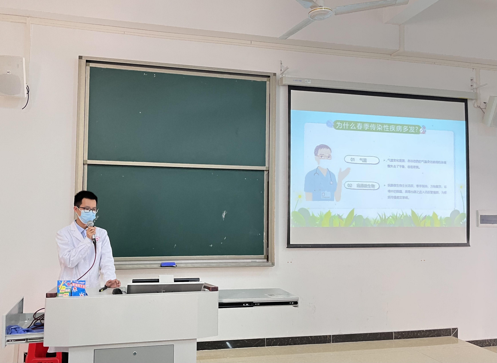 阳春三月,春暖花开,传染病也进入了高发期。为有效防止春季流行性传染病发生与传播,帮助我校师生全面了解常见传染病的知识,更好地守护自己的健康,3月10日下午,我校特邀请白云区钟落潭医院公共卫生科医师许振东给全校师生带来一场春季流行性传染病预防讲座。各二级学院(含继续教育学院)学工副院长、全体辅导员及各班副班长参加了讲座。讲座由学生发展部副部长申海波主持。