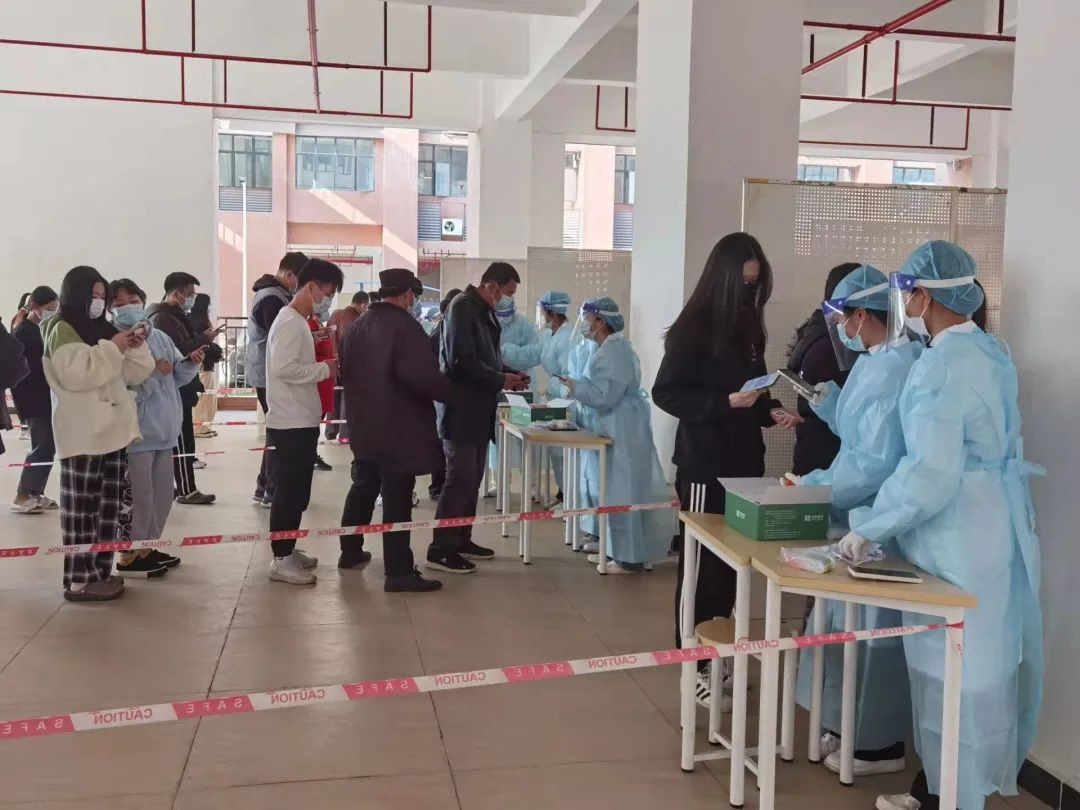 为保障师生安全,进一步做好校园疫情防控工作,筑牢织密全校师生员工生命健康安全屏障,2月26日上午,我校在2号实训楼架空层进行全校师生核酸检测采样工作。
