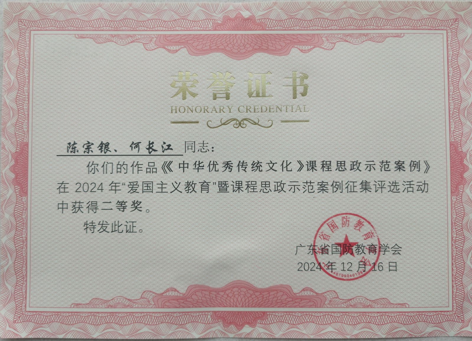 陈宗银、何长江老师作品在2024年“爱国主义教育”暨课程思政示范案例征集评选活动中获得二等奖