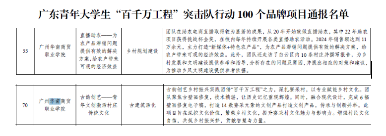 校团委兴新向农服务队和传媒学院古韵创艺乡村振兴实践团2个项目均入选广东省100个品牌项目