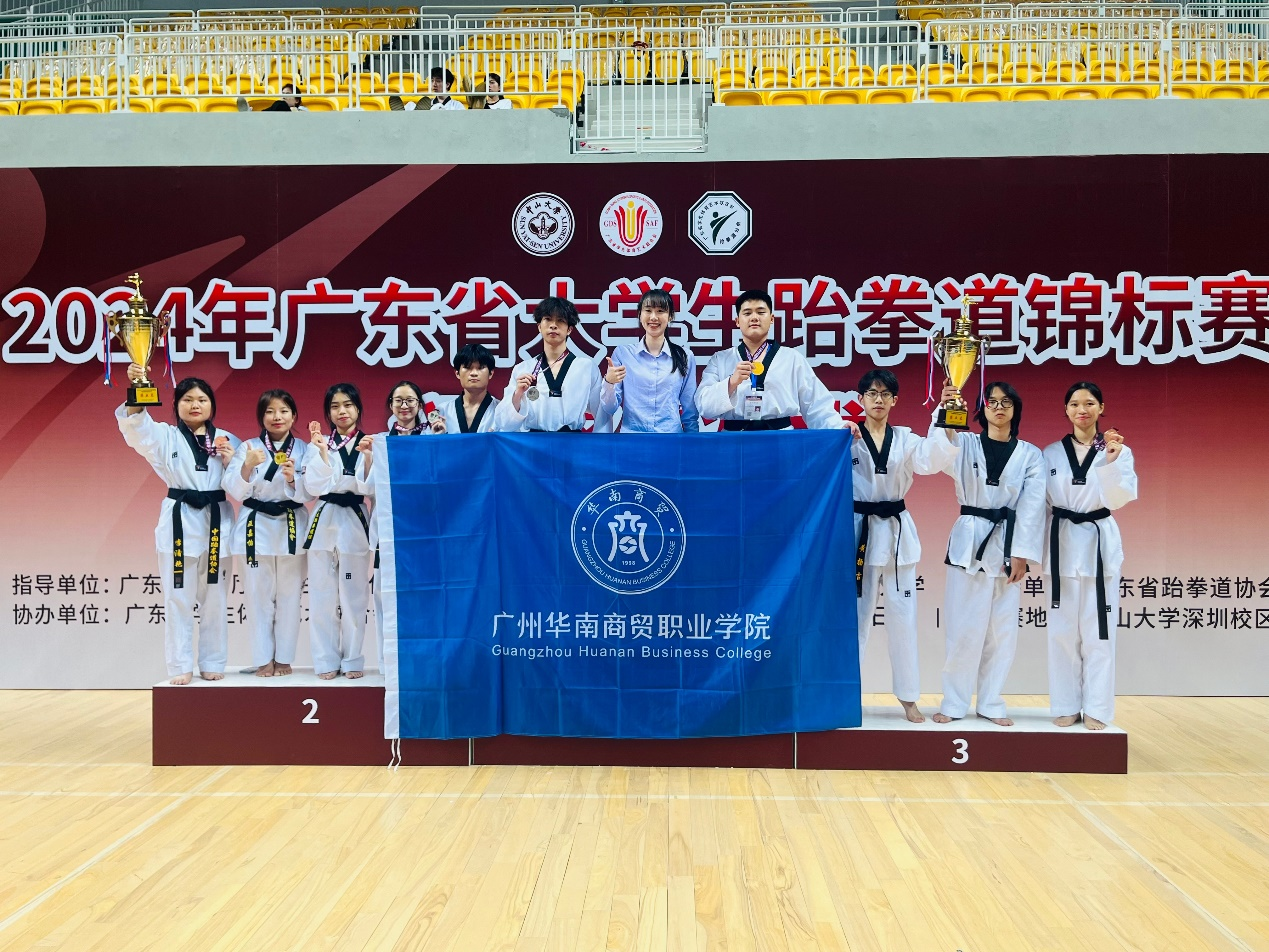 2024年广东省大学生跆拳道锦标赛获二金、二银、三铜、1个第四名、5个第五名的佳绩,并取得丙组竞技和品势两个项目的团体总分一等奖的历史性突破