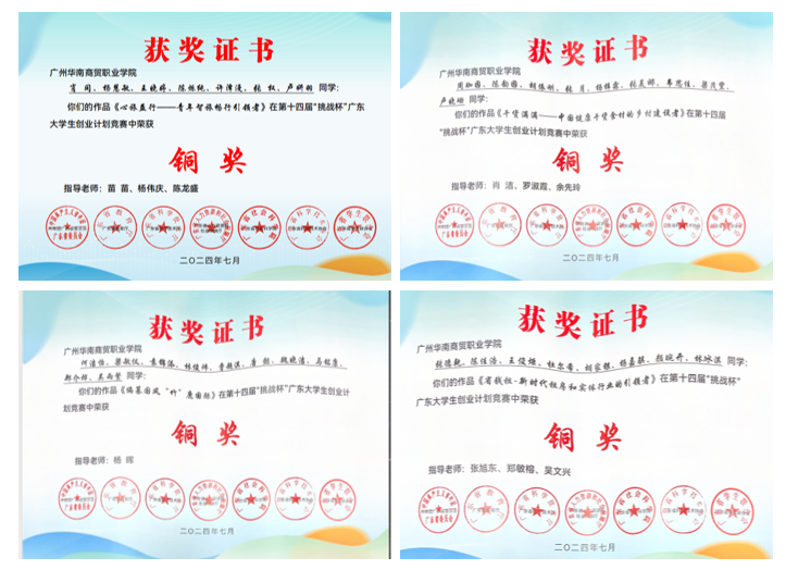 第十四届挑战杯大学生创业比赛,共获5项铜奖