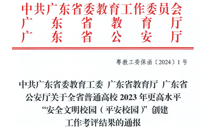 获评广东省2023年度更高水平“平安校园”建设工作“优秀”等级