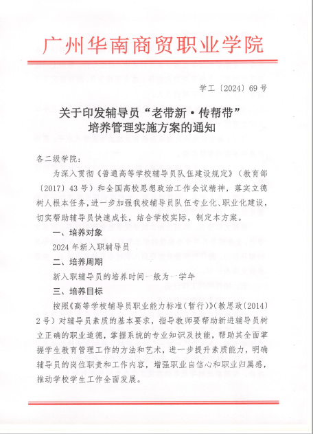 制定《辅导员“老带新·传帮带”培养管理实施方案》