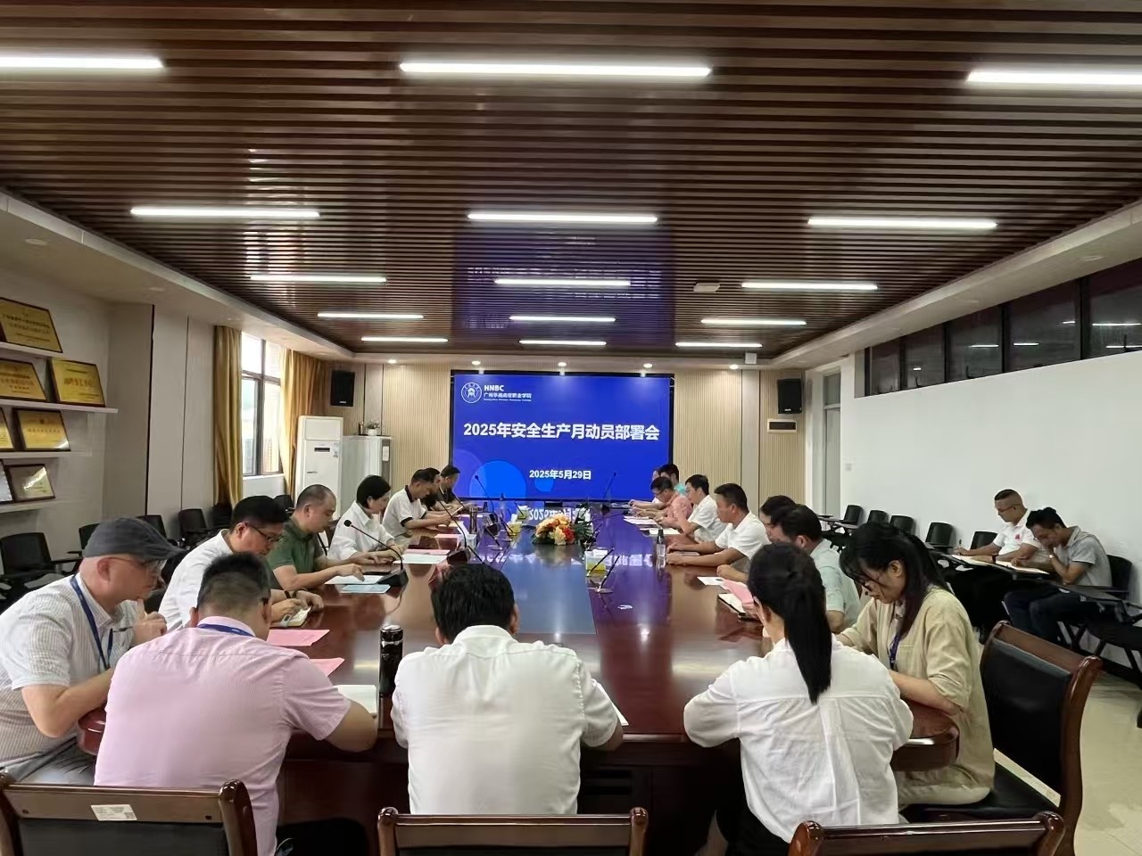 5月29日下午,我校在S3-907会议室召开2025年安全生产月动员部署会,正式拉开了以“人人讲安全、个个会应急——查找身边安全隐患”为主题的安全生产月活动序幕。集团安委办安全总监助理霍毅斌、安全主管尹小平,我校党委书记王书汉、副校长郑雪梅、校长助理杨志亮、学生发展部副部长朱韶兴,以及我校安全相关职能部门负责人、二级学院学工副院长等关键岗位负责人参会。会议由校长助理杨志亮主持。