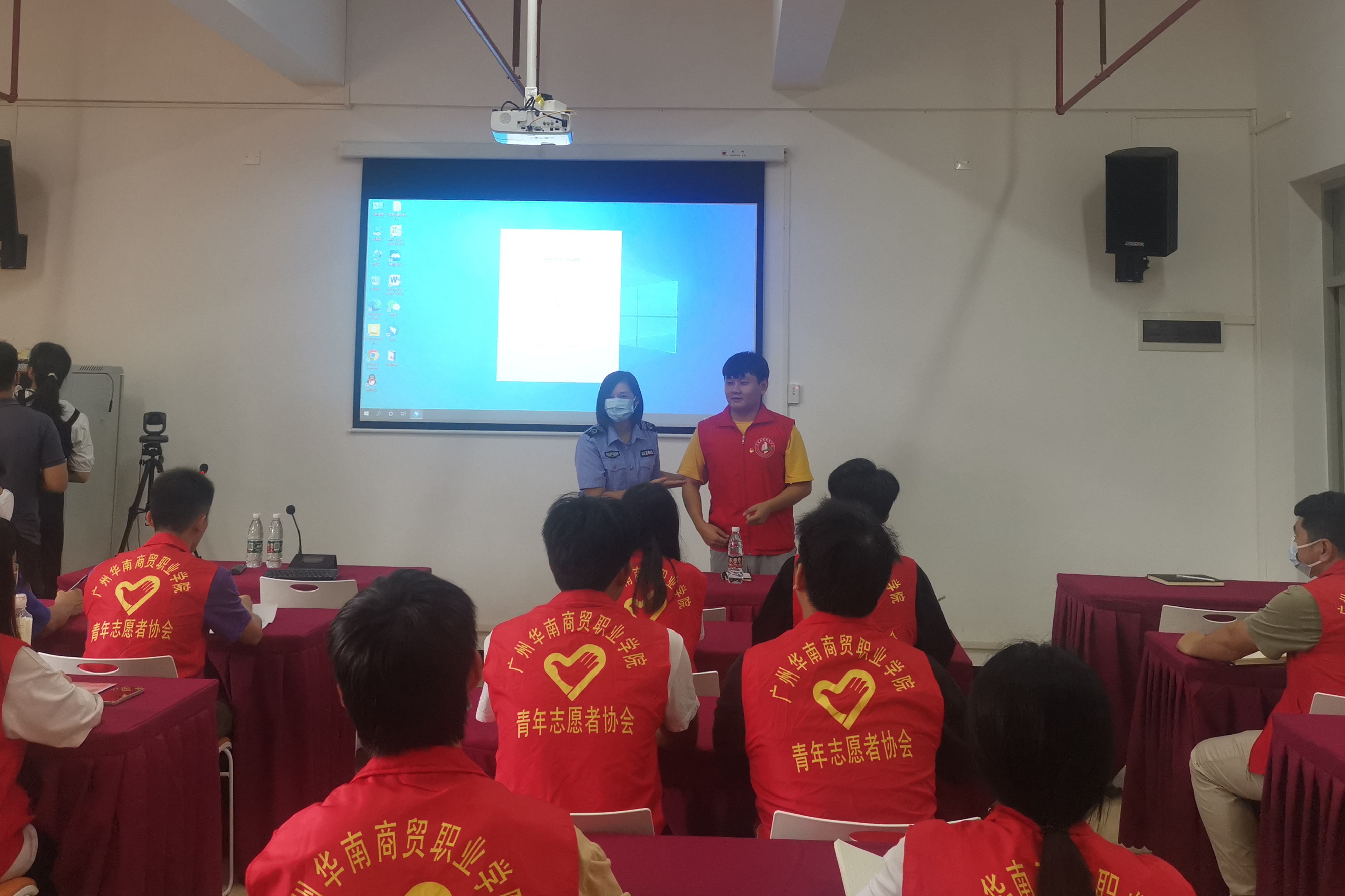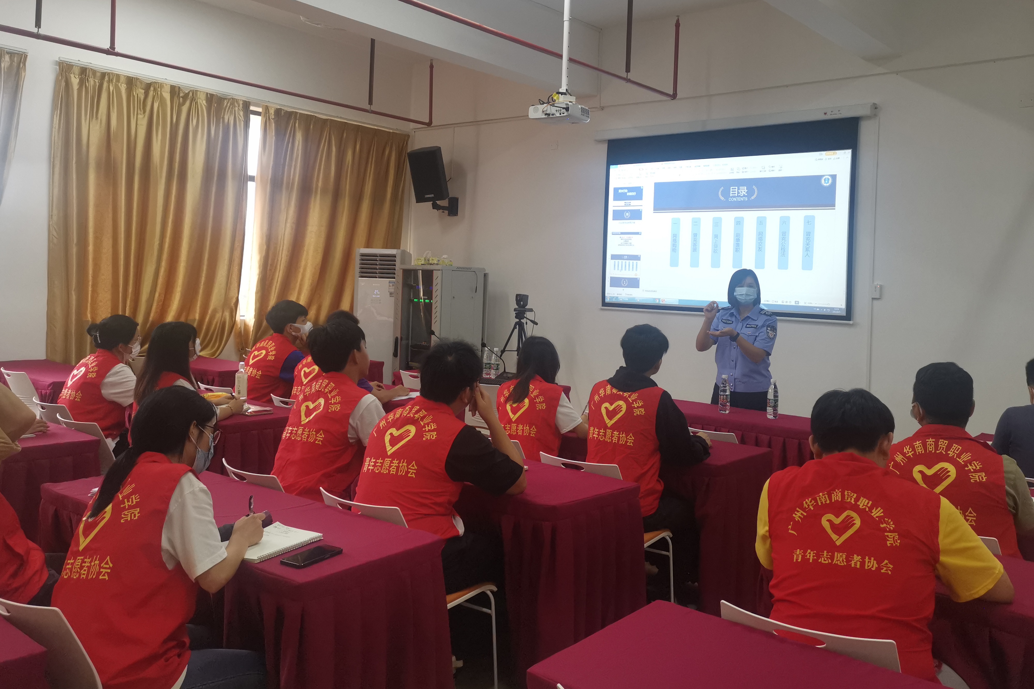 2022年6月8日下午3点,白云反诈中心到我校开展主题为“携手同行、反诈入校”的校园志愿者培训活动。白云分局反诈中心张小英警官为志愿者们进行培训。
